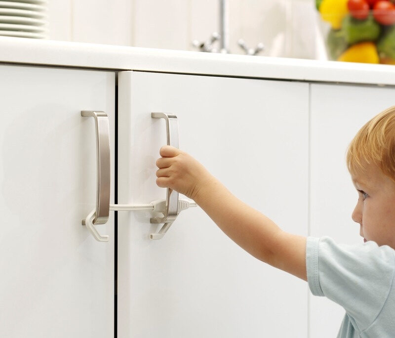 Poznaj blokadę szafek Baby Dan Wystarczy założyć blokadę na uchwytach drzwiczek i zacisnąć. Aby zdjąć blokadę należy nacisnąć przycisk i rozciągnąć blokadę. Odpowiednia do drzwiczek z uchwytami o grubości maks. 2,5 cm Blokada rozszerza się do wymiarów od 55mm do 140mm. Bardzo prosta w użytkowaniu przez dorosłych, przy jednoczesnym zapewnieniu bezpieczeństwa dzieci. Łatwa w montażu….