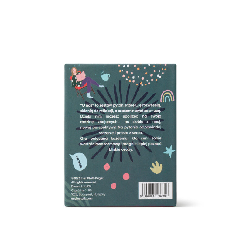 Poznaj grę stworzoną z myślą o szczerych rozmowach, która łączy ludzi — rodzinę, przyjaciół, pary i grupy — w atmosferze otwartości i autentyczności. „O Nas – Gra w Szczerość” to zestaw 80 kart z unikalnymi pytaniami, które zapraszają do głębokiego poznania siebie i innych. Brak tutaj złych odpowiedzi — jedyną zasadą jest szczerość. Dzięki tej grze: Zainicjujesz…