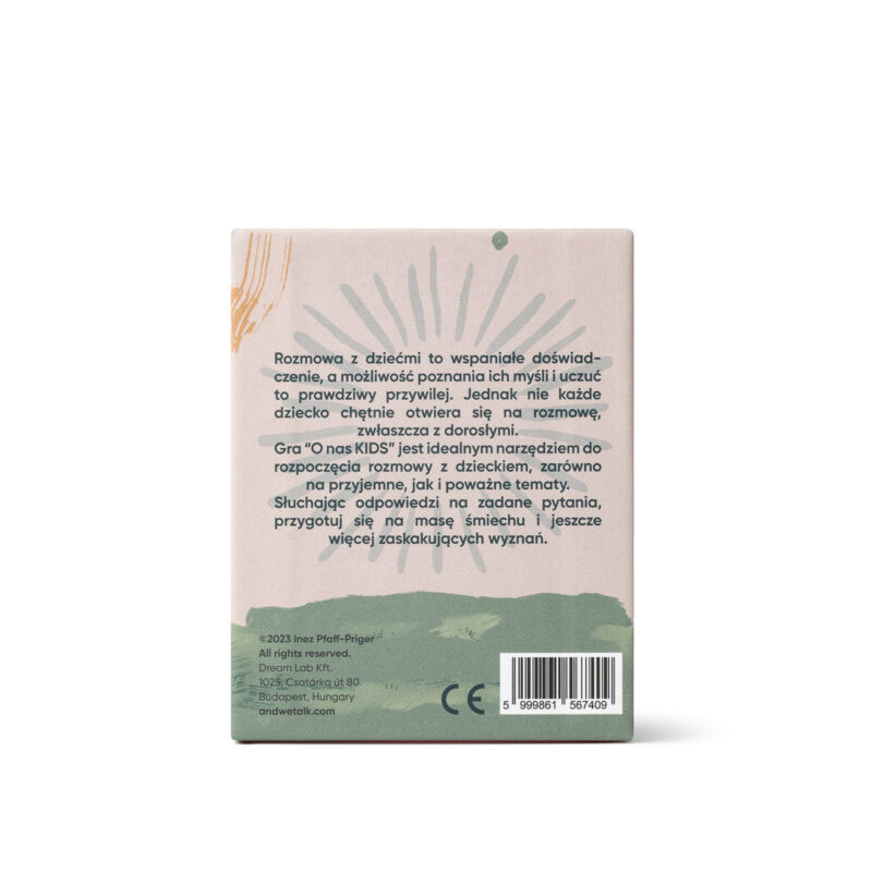 Poznaj grę, która łączy dzieci, rodziców i bliskie osoby w szczerej rozmowie — idealna okazja, by lepiej poznać swoje dziecko i wspólnie spędzić czas pełen uśmiechu, refleksji i głębszych pytań. „O nas Kids” to zestaw 80 kart z pytaniami stworzonymi z myślą o młodszej generacji. Dzięki nim: dziecko uczy się wyrażać swoje uczucia i spostrzeżenia w…