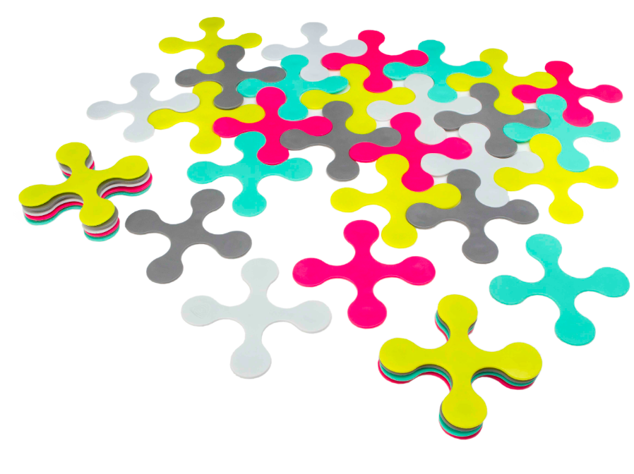 W opakowaniu znajduje się 18 puzzli w pięciu różnych kolorach. Puzzle oprócz tego, że mogą być przyczepione do podłoża wanny, to dla zwiększenia frajdy zabawy podczas kąpieli można je przyczepić do boków wanny lub na płytki. Przyczepienie puzzli do ściany, to także świetny sposób na wysuszenie ich po zakończonej kąpieli – po prostu obciekną one z wody i po kilku godzinach będą już suche.