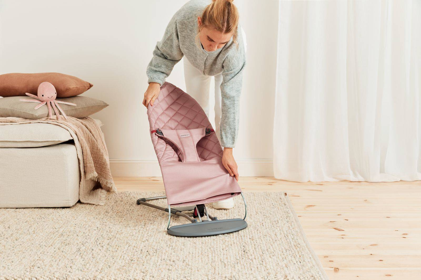 BABYBJORN – leżaczek BLISS w kolorze Różany z ramą w kolorze ciemny szary