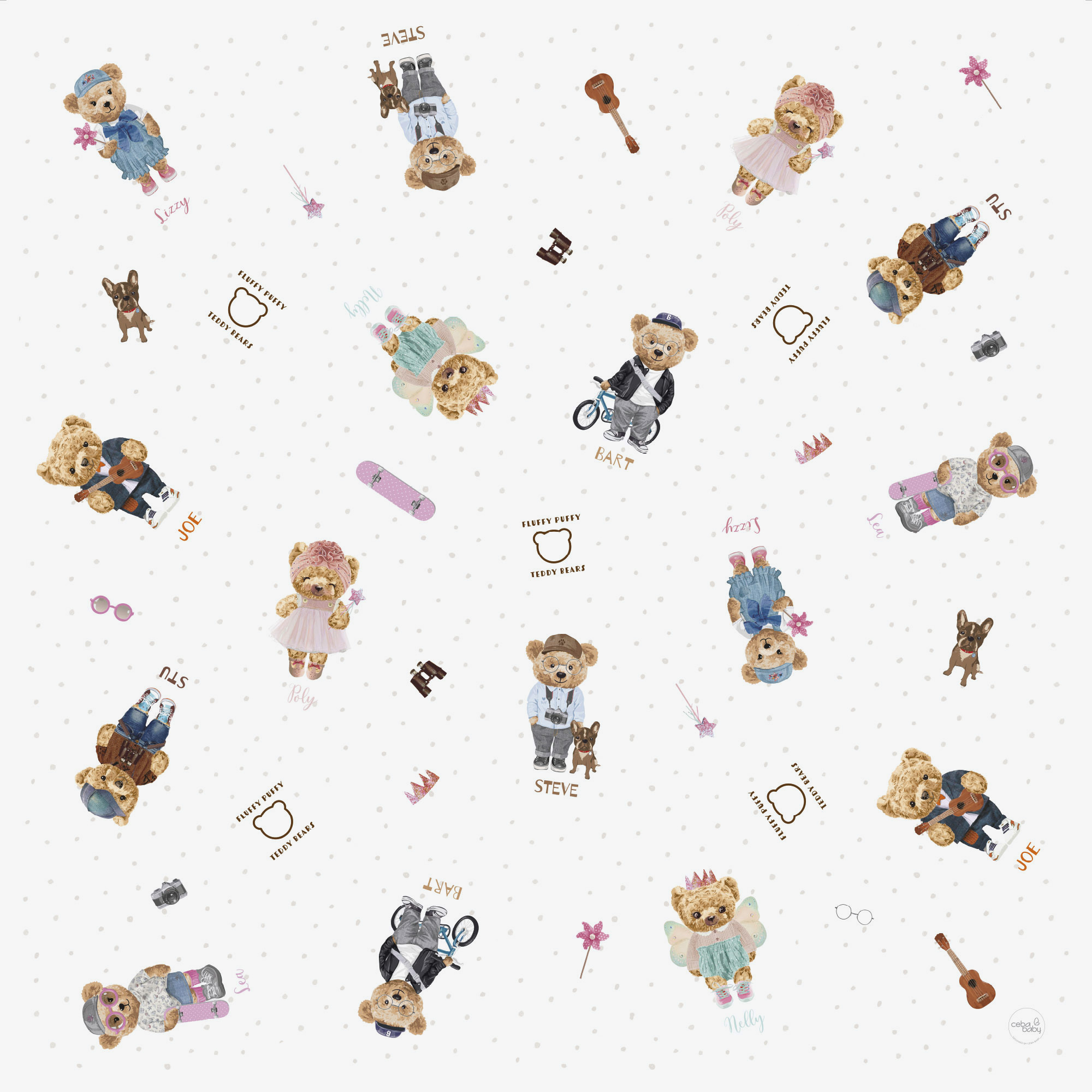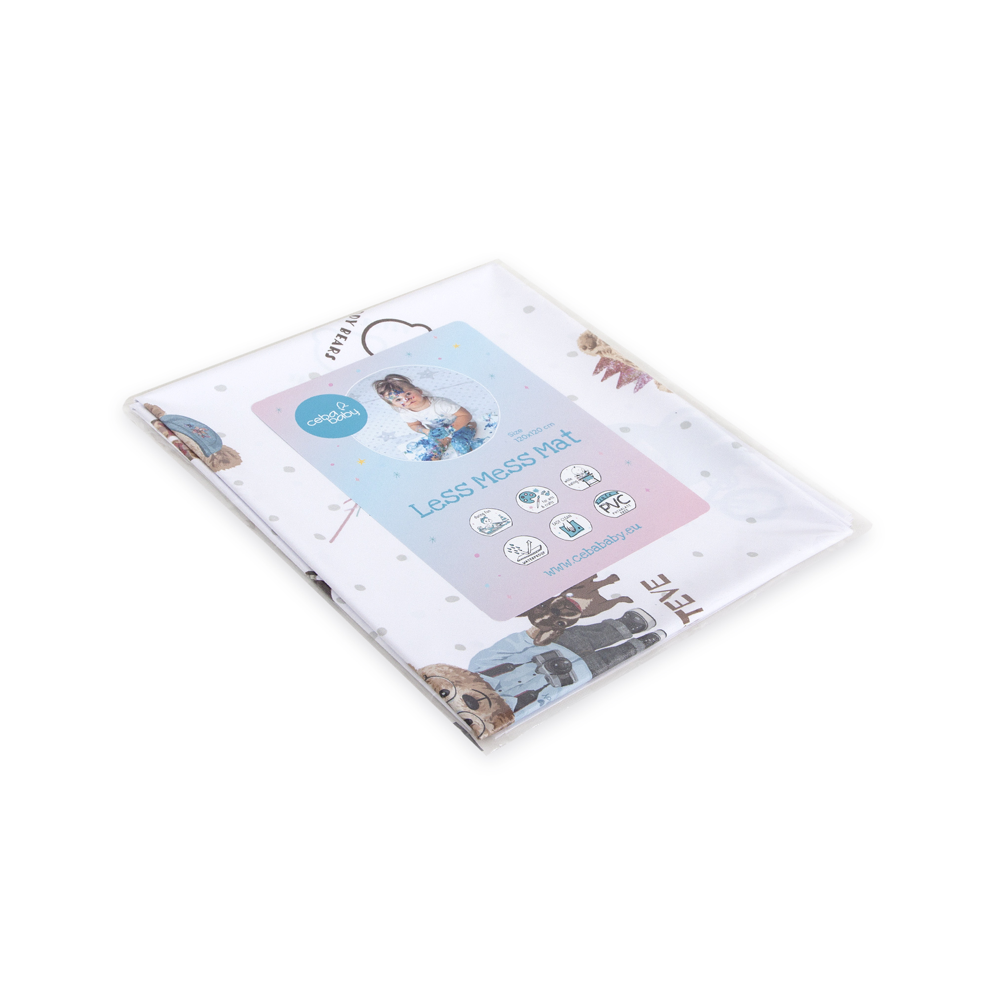 CEBA BABY Less mess mat – mata ochronna (120×120) Fluffy Puffy Teddy Bears Team