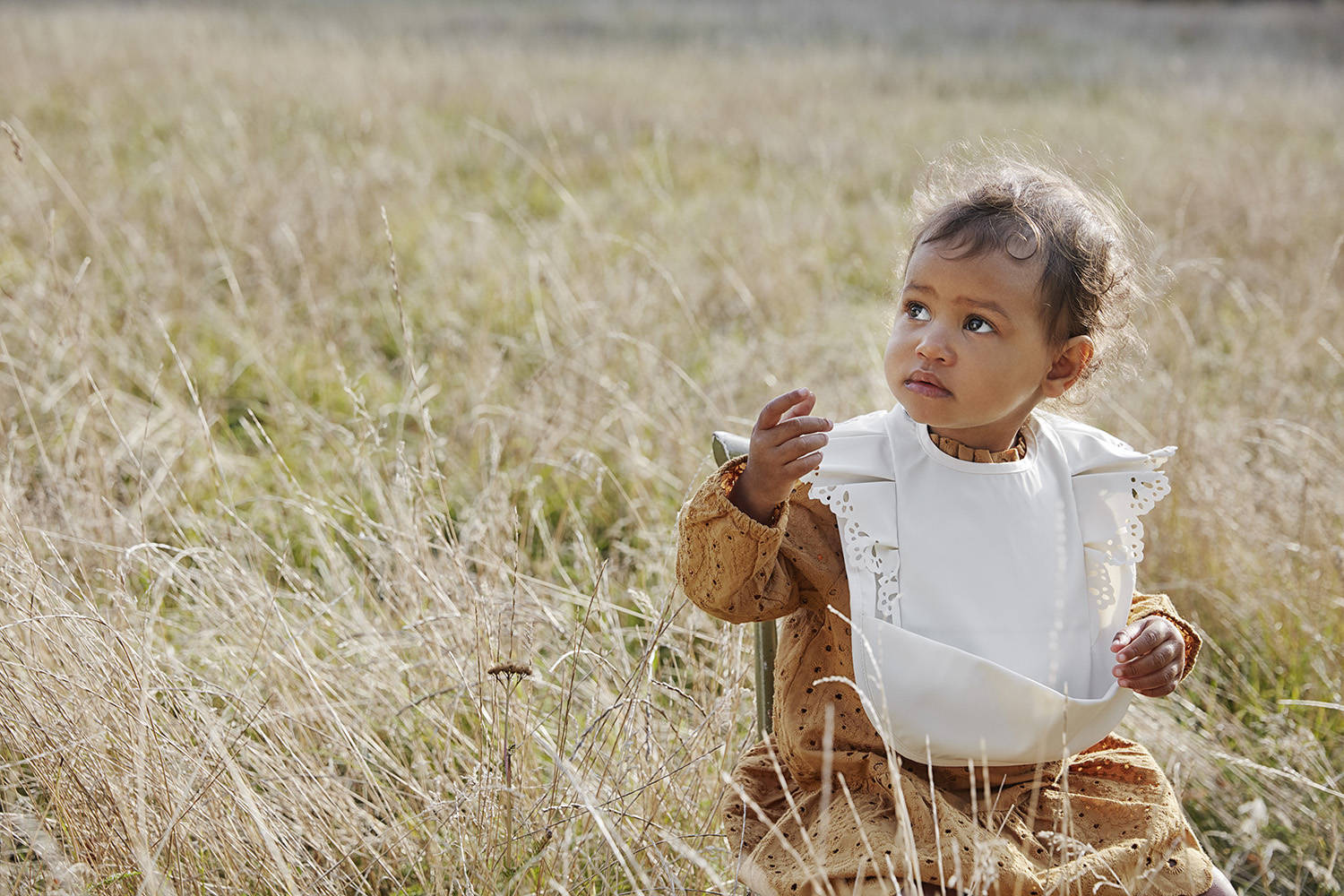 Stylowy śliniaczek szwedzkiej firmy Elodie Details, wyposażony w kieszonkę z przodu, zapewnia porządek i komfort w trakcie karmienia dziecka. Wykonane z szybkoschnącego materiału posiadającego certyfikat Oeko-Tex, całkowicie wolny od polichlorku winylu (PVC-free), idealne dopasowanie do potrzeb każdego dziecka. Śliniaczki wystarczy przetrzeć lub umyć po każdym użyciu i odczekać kilka minut aż wyschną. Śliniaczki są zapinane na duży miękki rzep. To produkt praktyczny i przyjazny dla środowiska.