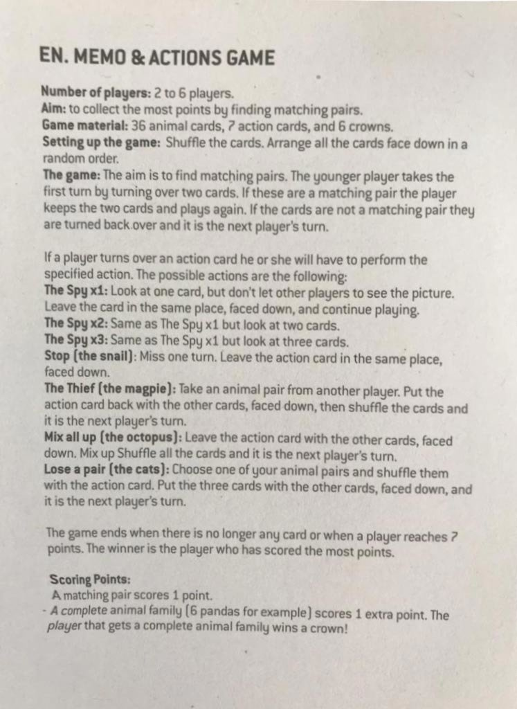 Instrukcja gry memo Król Panda: