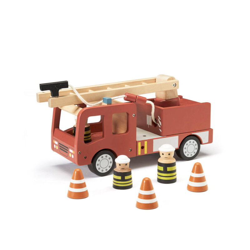 Zestaw zawiera: prom samochodowy z dwoma samochodami, dwoje pasażerów, kapitana, łódź ratunkową, rampę najazdową do drzwi pasażera. Prom ma koła, dzięki którym płynnie się przemieszcza. Zabawka jest wykonana z drewna z certyfikatem FSC.