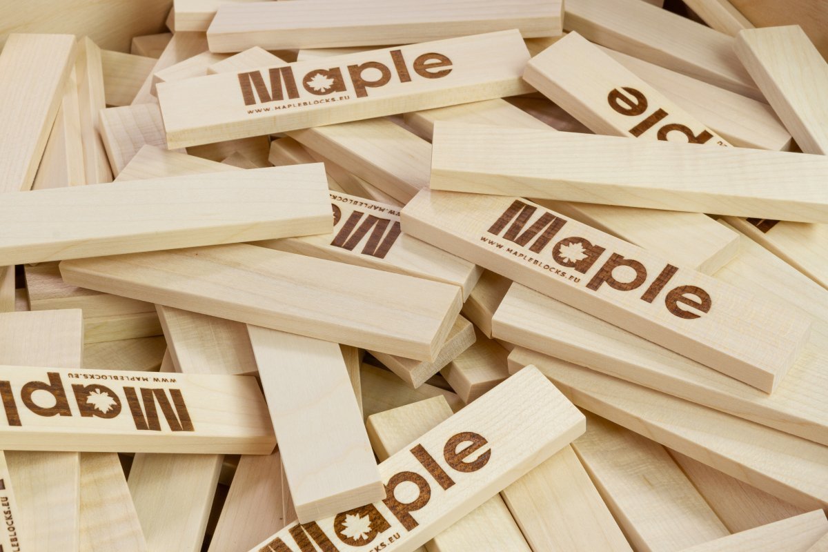 Klocki wykonane są z naturalnego, trwałego, lekkiego i wytrzymałego Klonu.