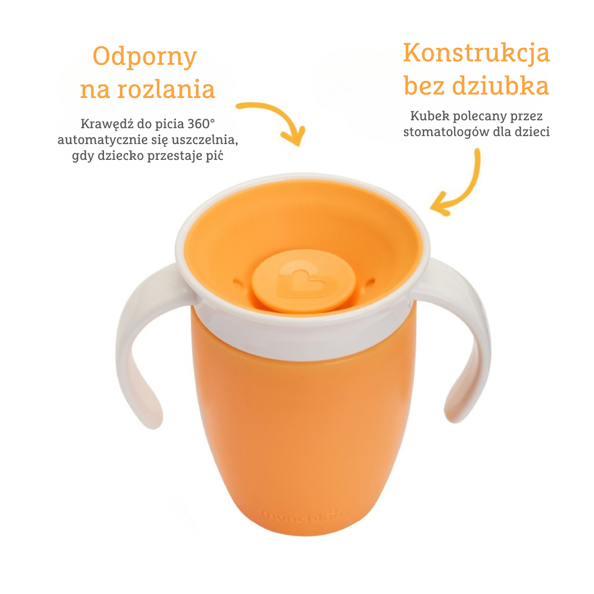 Kubek treningowy Munchkin Miracle® 360° z uchwytami został zaprojektowany z myślą o małych odkrywcach i ich rodzicach. Dzięki opatentowanej konstrukcji 360° dziecko może pić z każdej strony, zupełnie jak z otwartego kubka. Łączy wygodę z troską o zdrowie dziecka – wspiera rozwój jamy ustnej i jest rekomendowany przez specjalistów.