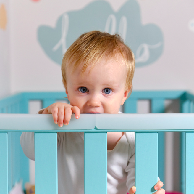 Zabezpieczenie na poręcz do dziecięcego łóżeczka chroni zęby dziecka i łagodzi podrażnienia dziąseł.