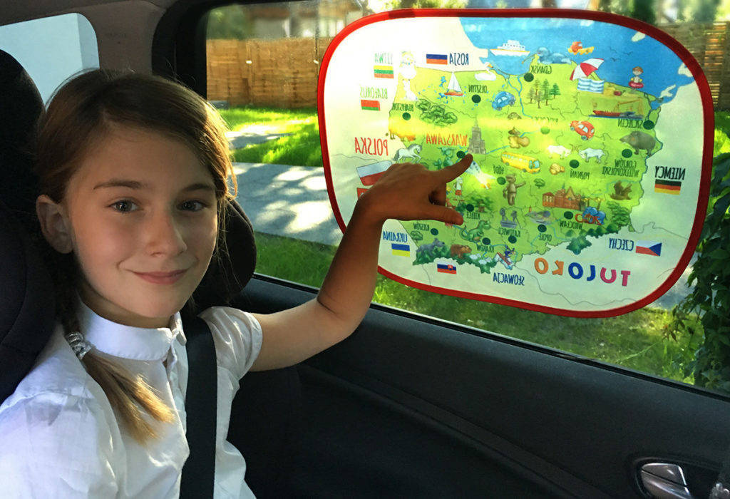 Barwna kolorystyka i przyjazna grafika zaciekawi małych podróżników! Na osłonce umieszczona jest mapa Polski.