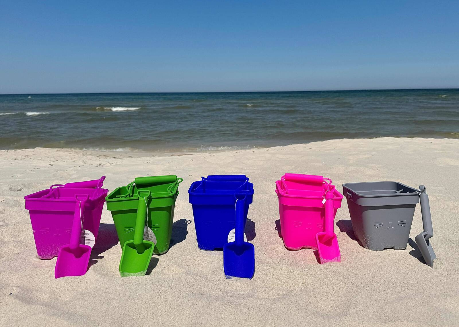 1. materiał wiaderko i łopatka: 100% Food Grade Silicone – silikon dopuszczony do kontaktu z żywnością.
