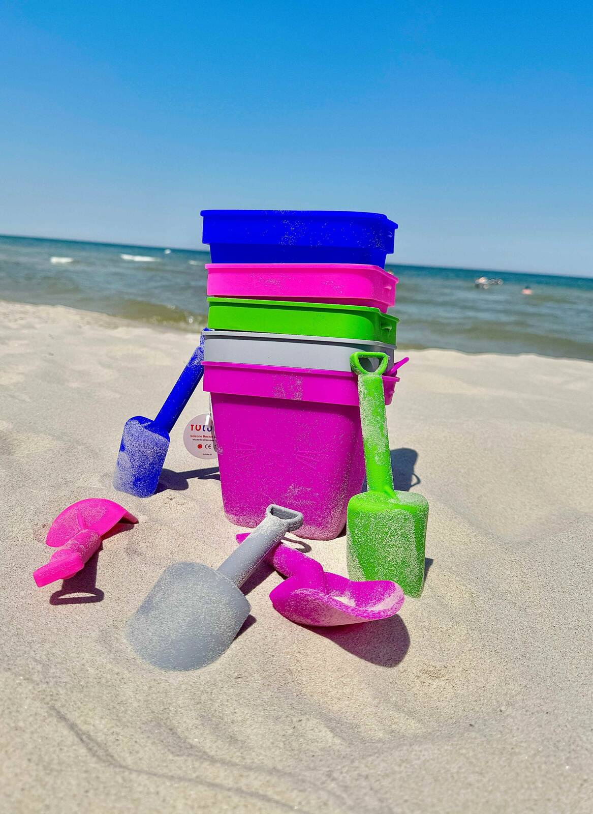 Wielofunkcyjne silikonowe wiaderko w zestawie z łopatką i torebką plażową. Z wiaderka może korzystać cała rodzina! Dzieci do przenoszenia piasku, wody, kamyków, skarbów znalezionych na plaży lub w lesie oraz do tego wszystkiego co podpowie im wyobraźnia. Rodzice mogą używać go w domu jako doniczkę na kwiatek lub zioła, designerski kubek na przybory do pisania. Pięknie wygląda w łazience jako pudełko na kosmetyki lub biżuterię. Wiaderko silikonowe rozwija zdolności motoryczne i wyobraźnię dziecka ! Zachęca do zabawy w naturze! „Rośnie” razem z dzieckiem. Przynosi radość dzieciom w różnym wieku i nigdy im się nie nudzi! Idealny pomysł na ponadczasowy prezent. Zalety wiaderka silikonowego marki TULOKO: – FOLD&GO – Wygodne trakcie spacerów oraz rodzinnych podróży. Można go składać i zwijać. Zajmuje mało miejsca w torbie, walizce czy plecaku. – Wytrzymałe i trwałe – Alternatywa dla plastiku! Nie pęka. Odporne na niską i wysoką temperaturę. Może posłużyć przez kilka sezonów! – Bezpieczne dla dzieci – miękki i elastyczny w dotyku materiał – nie posiada twardych krawędzi. BPA FREE – nie zawiera Bisfenolu A. Nie zawiera lateksu, ftalanów, plastiku. Nie jest toksyczny i nie powoduje reakcji alergicznych. Bez zapachowy. – Wielofunkcyjne – Można używać do zabawy na plaży, w piaskownicy, w wodzie, na śniegu. Można stosować ją jako osłonka na doniczkę czy pojemnik na przybory piśmienne. – Materiał przyjazny środowisku – Silikon nie rozpada się na mikroplastik, przez co nie zanieczyszcza oceanów i nie jest szkodliwy dla ludzi i zwierząt. zestaw zawiera: wiaderko + łopatka + torba specyfikacja: wiaderko – materiał: 100% Food Grade Silicone – silikon dopuszczony do kontaktu z żywnością. – pojemność: 1,6 litra – waga: 498 gram – wymiary: wysokość: 16 cm x szerokość w górnej części: szerokość w dolnej części – kolory: