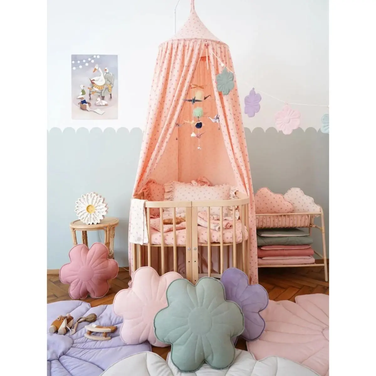 - Mniejsze łóżeczko: wys. 75 cm, szer. 77,5 cm, dł. 77,5 cm.