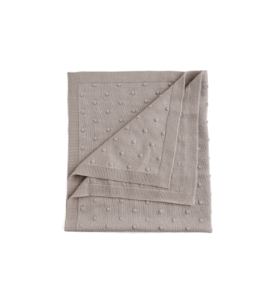 Uroczy kocyk z teksturą małych kuleczek w kolorze piaskowym marki ooh noo to nie tylko praktyczne okrycie dla Twojego maluszka, ale także stylowy dodatek. Zapewnia ciepło oraz komfort i wspaniale się sprawdza w codziennym użytkowaniu lub podczas podróży. Mięciutki, niedrapiący kocyk został wykonany z mieszanki wełny i akrylu.