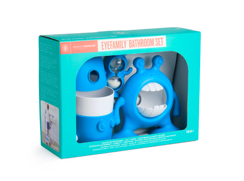 Dzięki zestawowi dla dzieci do mycia zębów Prince Lionheart EyeFAMILYTM, stworzonemu w klimacie popularnych filmów rysunkowych, codzienne mycie zębów może stać się dla maluszków przyjemną zabawą. Komplet czterech elementów będzie pomocny we wprowadzeniu zdrowych nawyków dotyczących higieny jamy ustnej u najmłodszych członków rodziny. W skład zestawu dla dzieci do mycia zębów wchodzą: kubek do płukania ust, uchwyt na szczoteczkę w kształcie śmiesznej buzi zębatego stworka, dopasowana do kranu końcówka przedłużająca oraz minutnik wskazujący czas mycia zębów. Dzięki marce Prince Lionheart od dziś Twoja pociecha bez upominania i próśb chętnie pobiegnie do łazienki na poranne lub wieczorne, samodzielne mycie zębów.