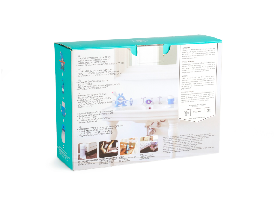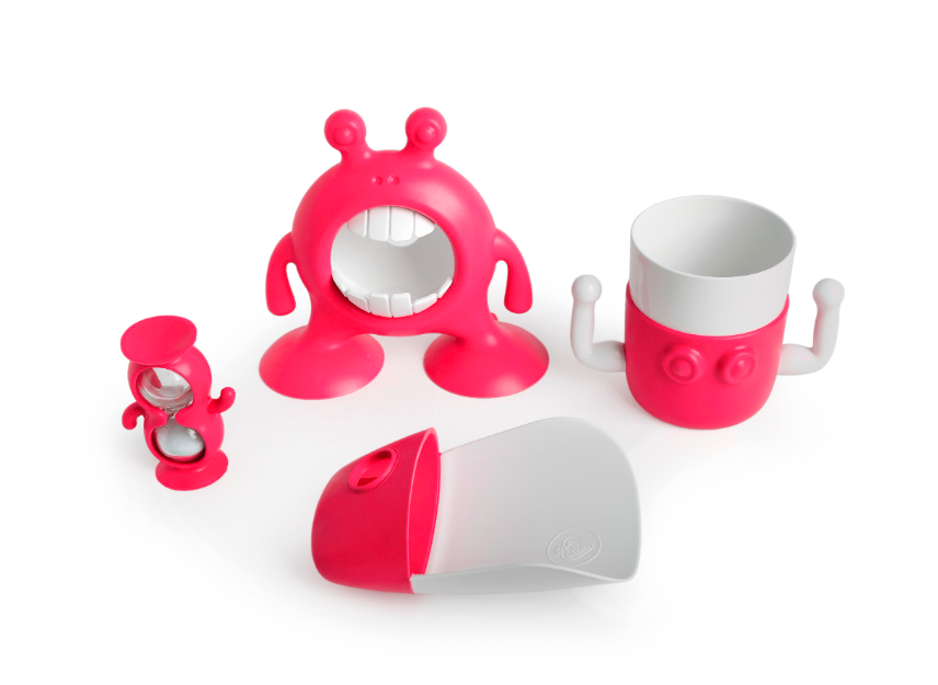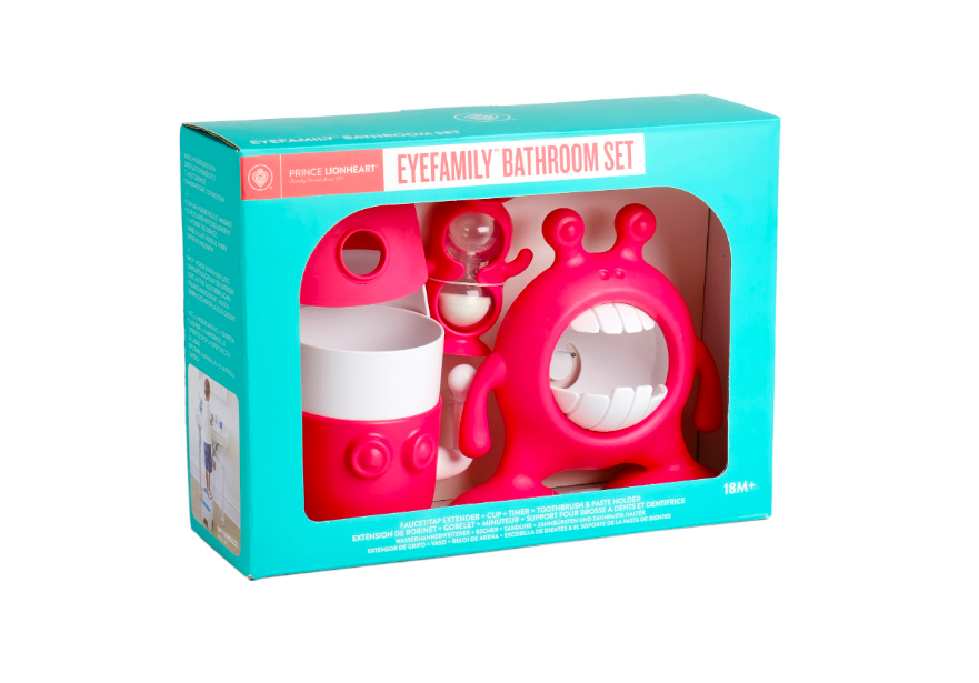 Dzięki zestawowi dla dzieci do mycia zębów Prince Lionheart EyeFAMILYTM, stworzonemu w klimacie popularnych filmów rysunkowych, codzienne mycie zębów może stać się dla maluszków przyjemną zabawą. Komplet czterech elementów będzie pomocny we wprowadzeniu zdrowych nawyków dotyczących higieny jamy ustnej u najmłodszych członków rodziny. W skład zestawu dla dzieci do mycia zębów wchodzą: kubek do płukania ust, uchwyt na szczoteczkę w kształcie śmiesznej buzi zębatego stworka, dopasowana do kranu końcówka przedłużająca oraz minutnik wskazujący czas mycia zębów. Dzięki marce Prince Lionheart od dziś Twoja pociecha bez upominania i próśb chętnie pobiegnie do łazienki na poranne lub wieczorne, samodzielne mycie zębów.