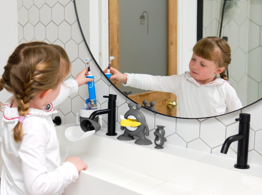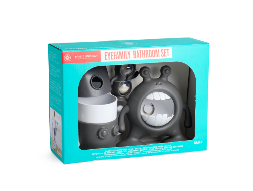 Dzięki zestawowi dla dzieci do mycia zębów Prince Lionheart EyeFAMILYTM, stworzonemu w klimacie popularnych filmów rysunkowych, codzienne mycie zębów może stać się dla maluszków przyjemną zabawą. Komplet czterech elementów będzie pomocny we wprowadzeniu zdrowych nawyków dotyczących higieny jamy ustnej u najmłodszych członków rodziny. W skład zestawu dla dzieci do mycia zębów wchodzą: kubek do płukania ust, uchwyt na szczoteczkę w kształcie śmiesznej buzi zębatego stworka, dopasowana do kranu końcówka przedłużająca oraz minutnik wskazujący czas mycia zębów. Dzięki marce Prince Lionheart od dziś Twoja pociecha bez upominania i próśb chętnie pobiegnie do łazienki na poranne lub wieczorne, samodzielne mycie zębów.